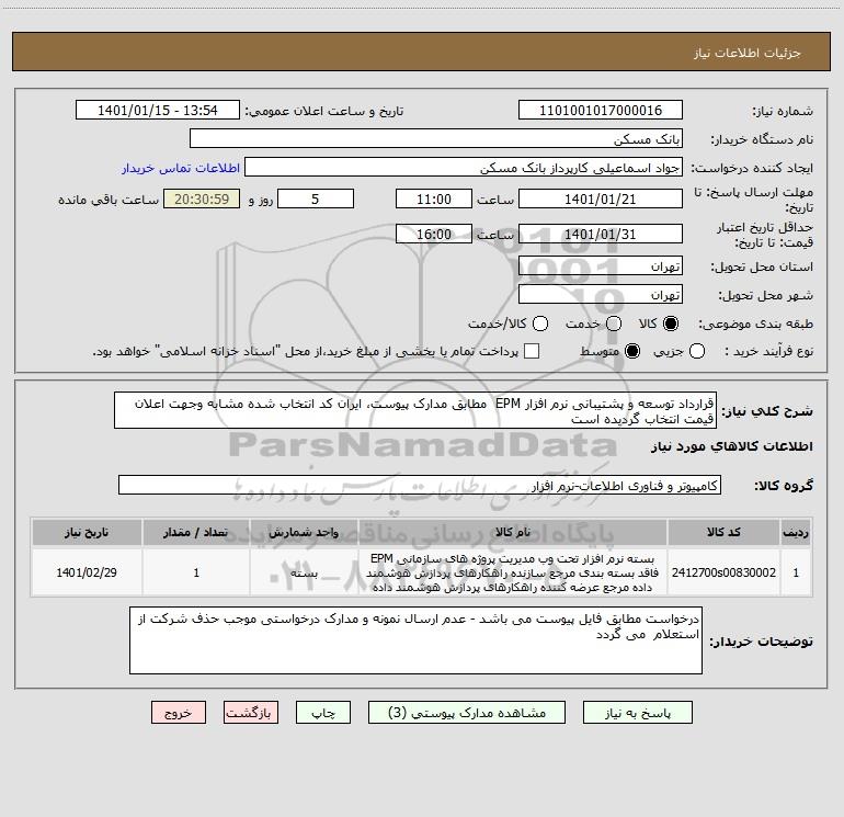شرح کلی نیاز: قرارداد توسعه و پشتیبانی نرم افزار EPM مطابق مدارک پیوست، ایران کد انتخاب شده مشابه وجهت اعلان قیمت انتخاب گردیده است