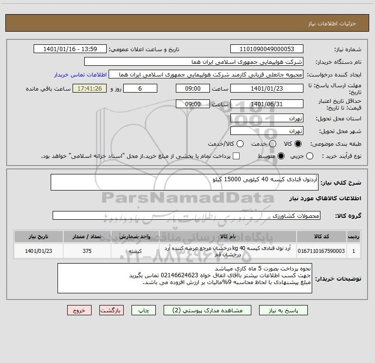 شرح کلی نیاز: آردنول قنادی کیسه 40 کیلویی 15000 کیلو