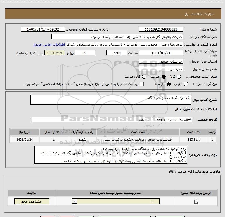 استعلام نگهداری فضای سبز پالایشگاه, استعلام نگهداری فضای سبز پالایشگاه