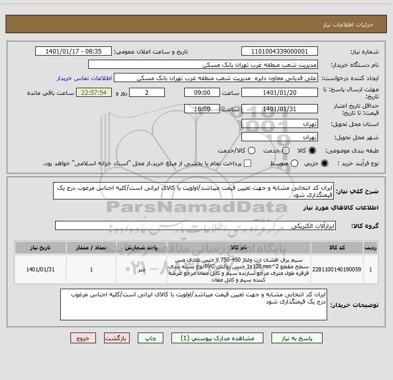 شرح کلی نیاز: ایران کد انتخابی مشابه و جهت تعیین قیمت میباشد/اولویت با کالای ایرانی است/کلیه اجناس مرغوب درج یک قیمتگذاری شود