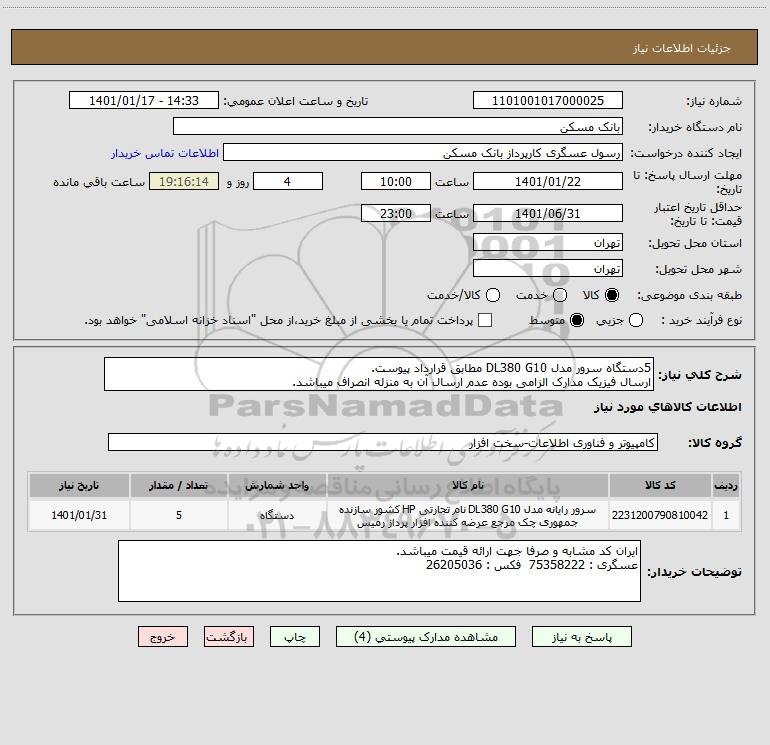 شرح کلی نیاز: 5دستگاه سرور مدل DL380 G10 مطابق قرارداد پیوست. ارسال فیزیک مدارک الزامی بوده عدم ارسال آن به منزله انصراف میباشد.