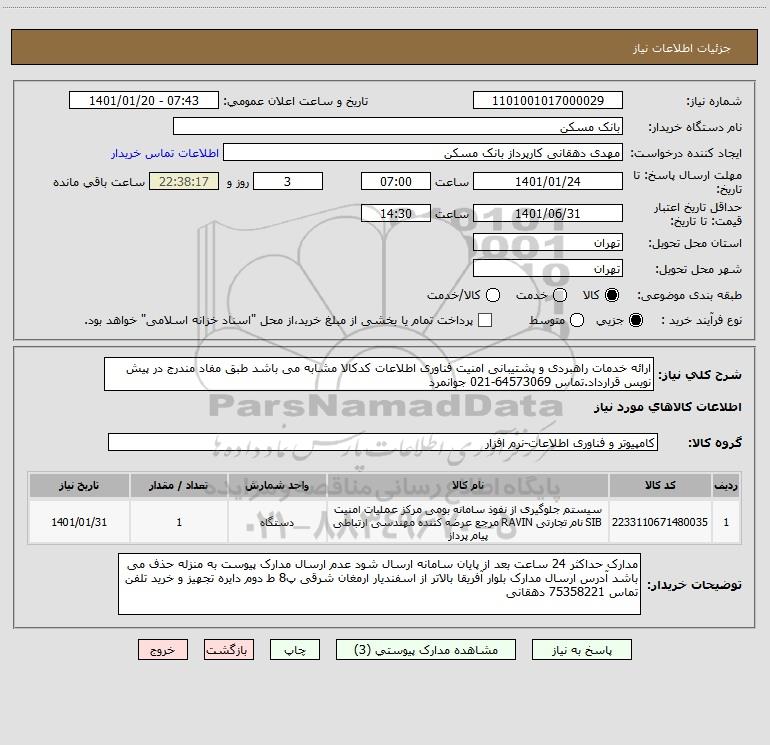 1 2233110671480035 سیستم جلوگیری از نفوذ سامانه بومی مرکز عملیات امنیت SIB نام تجارتی RAVIN مرجع عرضه کننده مهندسی ارتباطی پیام پرداز دستگاه 1 1401/01/31