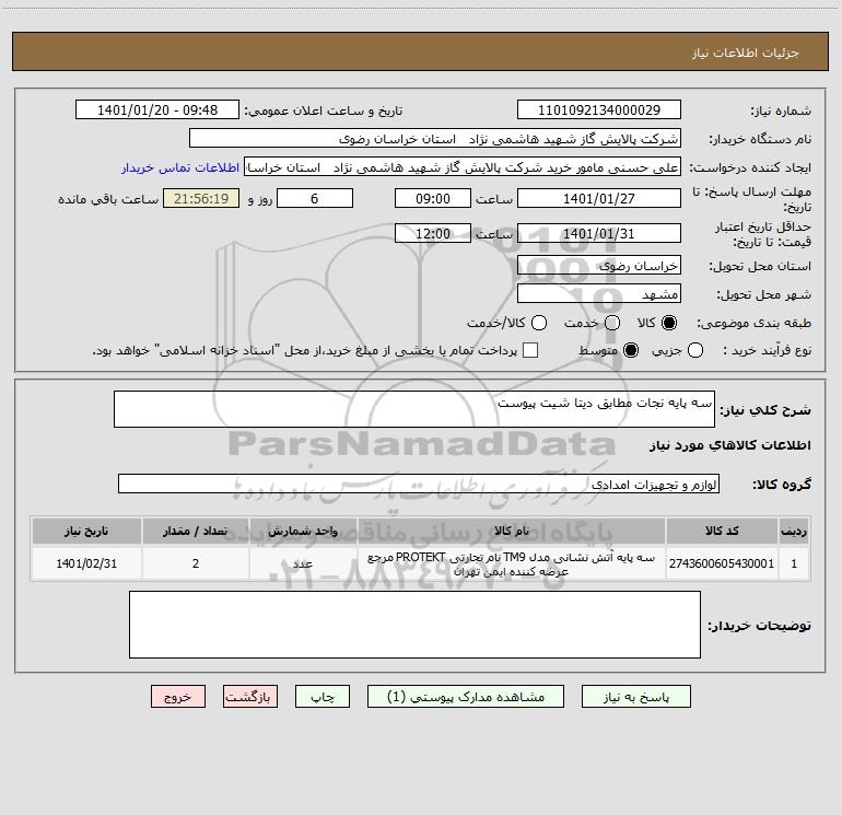 نام دستگاه خریدار:شرکت پالایش گاز شهید هاشمی نژاد استان خراسان رضوی