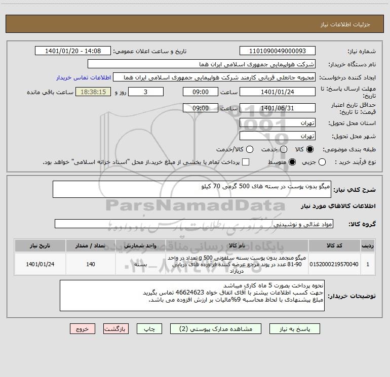 نام دستگاه خریدار:شرکت هواپیمایی جمهوری اسلامی ایران هما