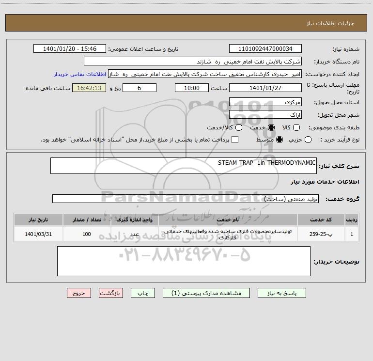 شرح کلی نیاز: STEAM TRAP 1in THERMODYNAMIC