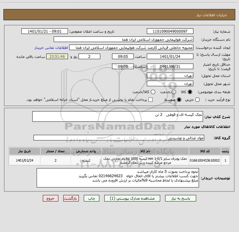 استعلام نمک کیسه ای و قوطی 2 تن , استعلام نمک کیسه ای و قوطی 2 تن