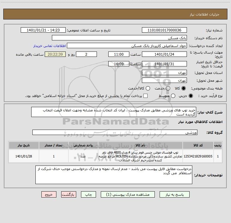 شرح کلی نیاز: خرید توپ های ورزشی مطابق مدارک پیوست ، ایران کد انتخاب شده مشابه وجهت اعلان قیمت انتخاب گردیده است