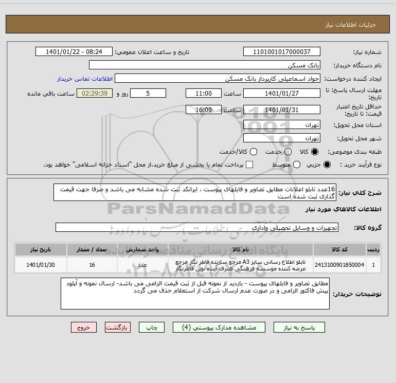 شرح کلی نیاز: 16عدد تابلو اعلانات مطابق تصاویر و فایلهای پیوست ، ایرانکد ثبت شده مشابه می باشد و صرفا جهت قیمت گذاری ثبت شده است