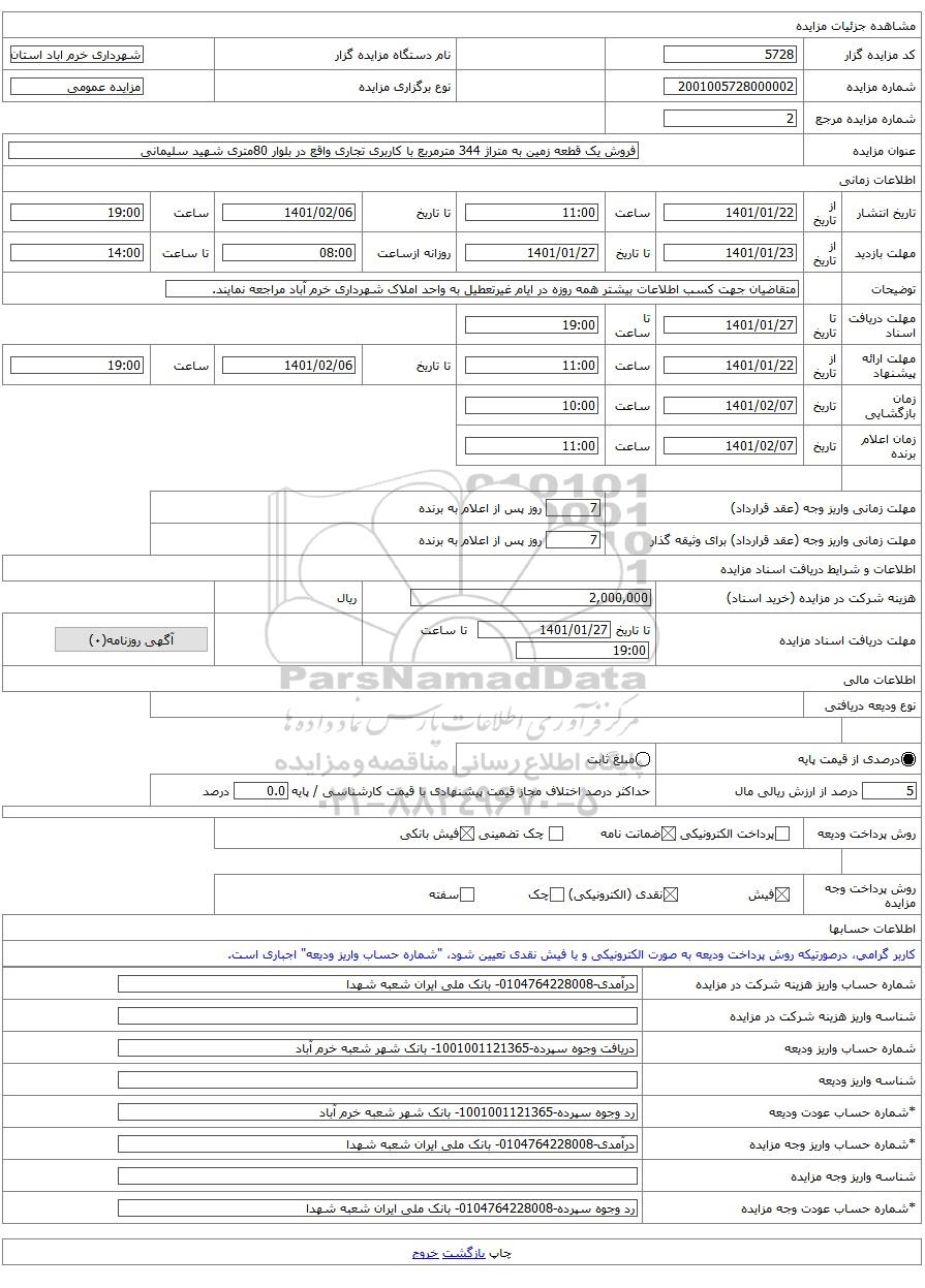شماره مال2101005728000002نوع برگزاری مزایده مزایده عمومی