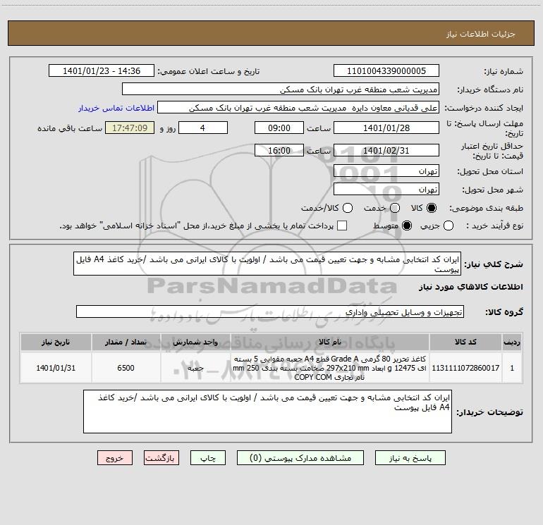 استعلام ایران کد انتخابی مشابه و جهت تعیین قیمت می باشد / اولویت با کالای ایرانی می باشد /خرید کاغذ A4 فایل پیوست , استعلام ایران کد انتخابی مشابه و جهت تعیین قیمت می باشد / اولویت با کالای ایرانی می باشد /خرید کاغذ A4 فایل پیوست