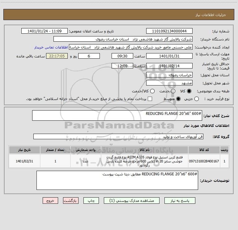 نام دستگاه خریدار:شرکت پالایش گاز شهید هاشمی نژاد استان خراسان رضوی