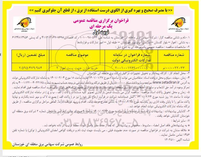 1. نام و نشانی مناقصه گزار: شرکت سهامی برق منطقه ای خوزستان به شناسه ملی