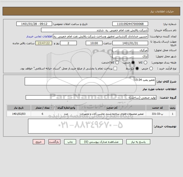 شرح کلی نیاز: تعمیر پمپ 34-15