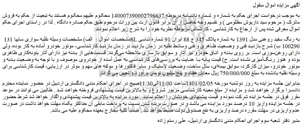 شعبه صادر کننده:شعبه سوم اجرای احکام مدنی دادگستری شهرستان اردبیل