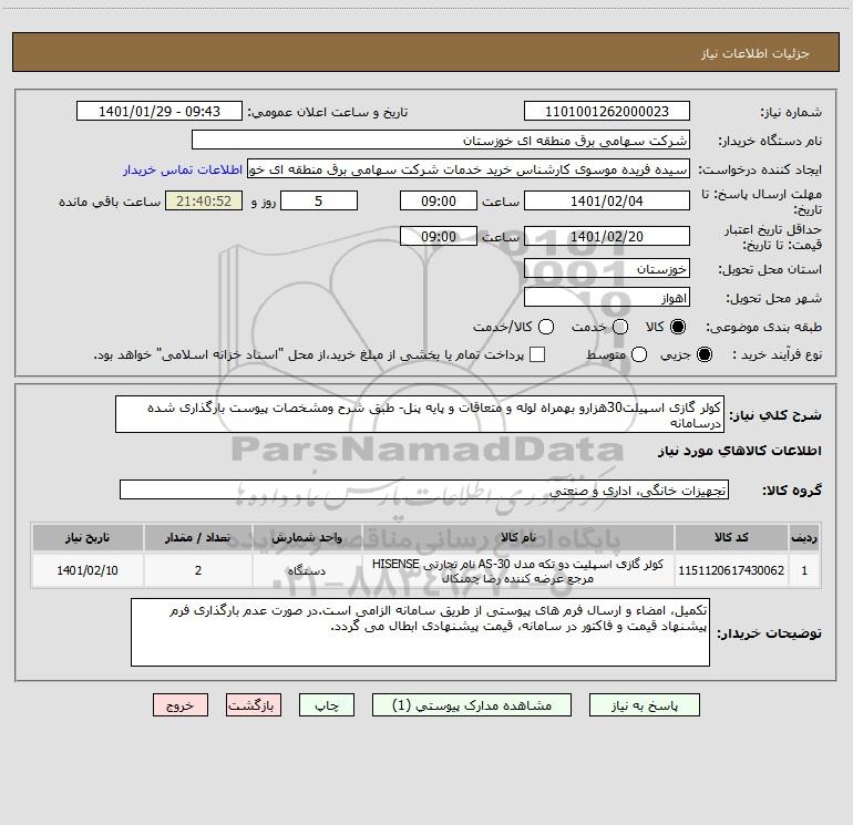 نام دستگاه خریدار:شرکت سهامی برق منطقه ای خوزستان