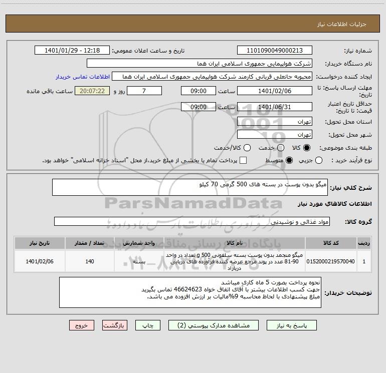نام دستگاه خریدار:شرکت هواپیمایی جمهوری اسلامی ایران هما