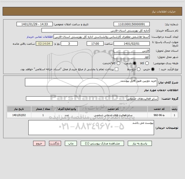 نام دستگاه خریدار:اداره کل بهزیستی استان فارس