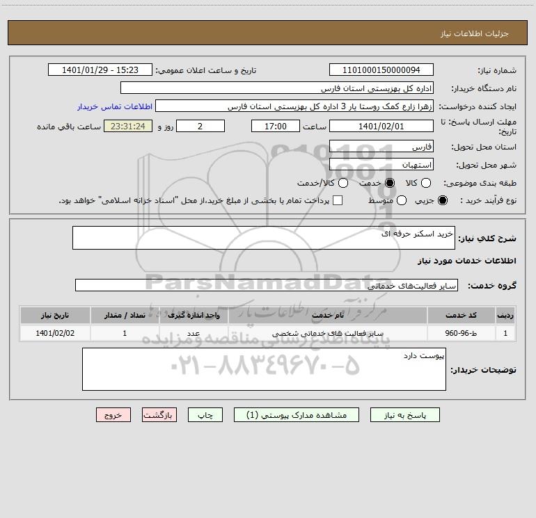 نام دستگاه خریدار:اداره کل بهزیستی استان فارس