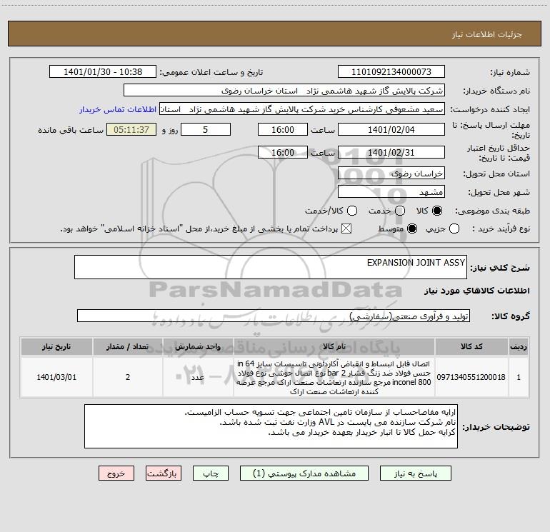 شرح کلی نیاز: EXPANSION JOINT ASSY