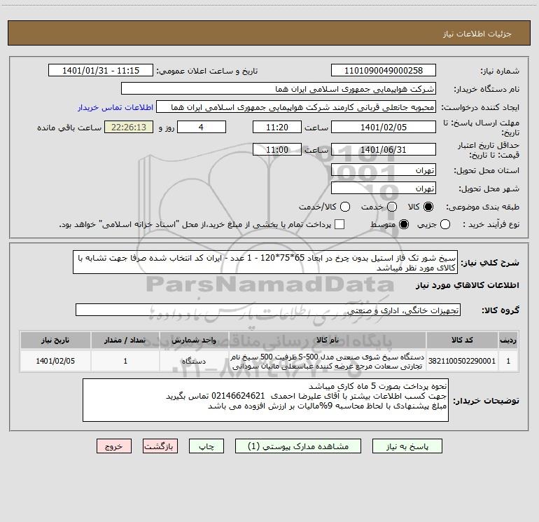نام دستگاه خریدار:شرکت هواپیمایی جمهوری اسلامی ایران هما
