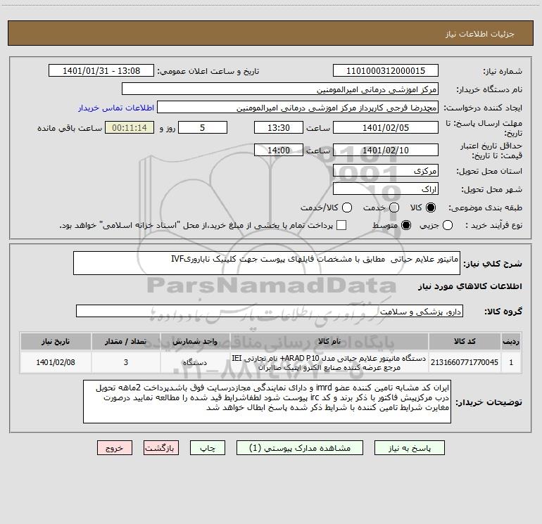 نام دستگاه خریدار:مرکز اموزشی درمانی امیرالمومنین