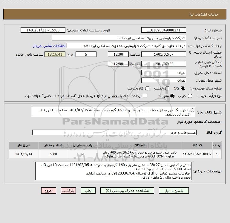 نام دستگاه خریدار:شرکت هواپیمایی جمهوری اسلامی ایران هما