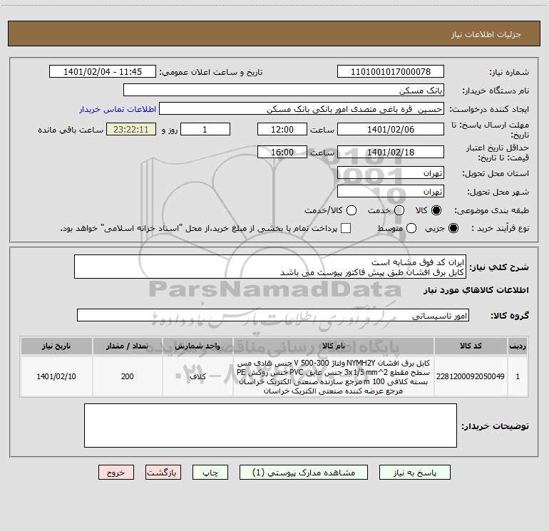 شرح کلی نیاز: ایران کد فوق مشابه است