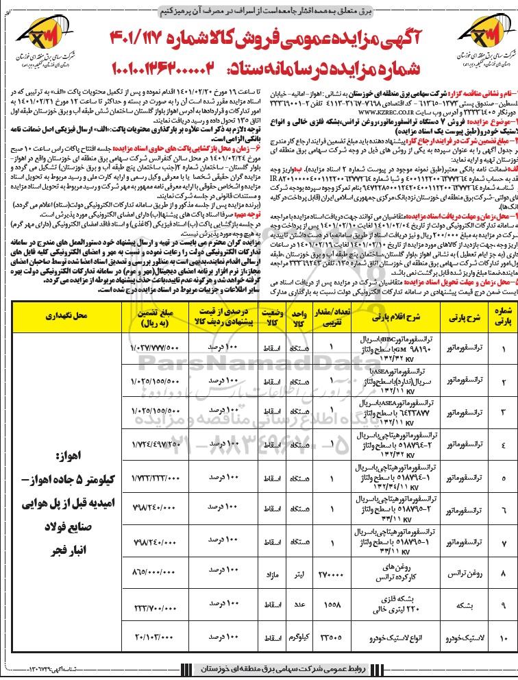 آگهی مزایده عمومی فروش کالا شماره 400/117؟