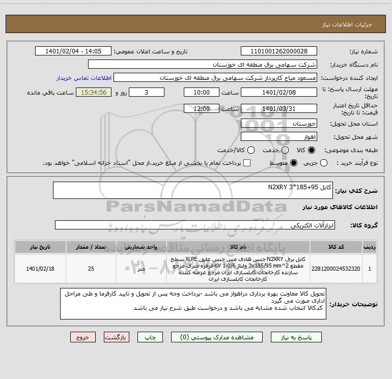 شرح کلی نیاز: کابل N2XRY 3*185+95