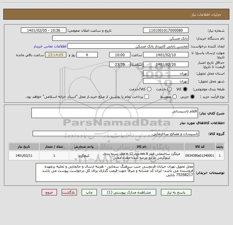 استعلام اقلام تاسیساتی, استعلام اقلام تاسیساتی