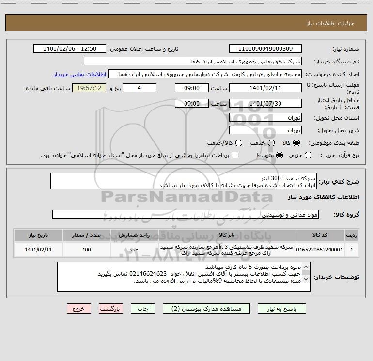 نام دستگاه خریدار:شرکت هواپیمایی جمهوری اسلامی ایران هما