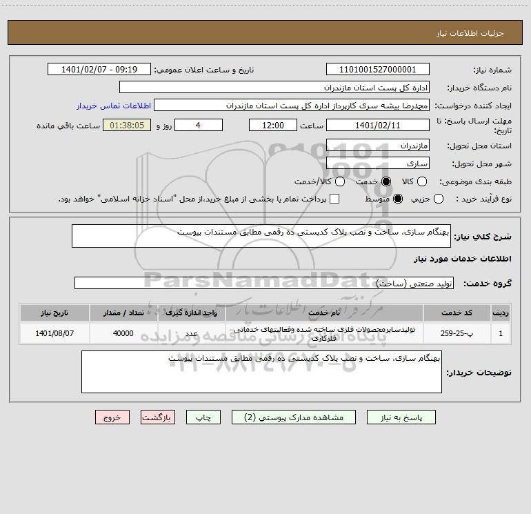 شرح کلی نیاز: بهنگام سازی، ساخت و نصب پلاک کدپستی ده رقمی مطابق مستندات پیوست