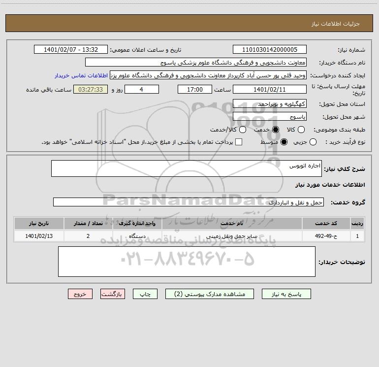 شرح کلی نیاز: اجاره اتوبوس