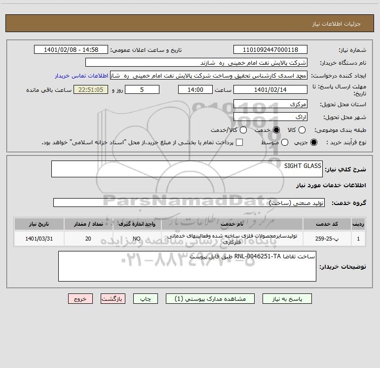 توضیحات خریدار:ساخت تقاضا RNL-0046251-TA طبق فایل پیوست