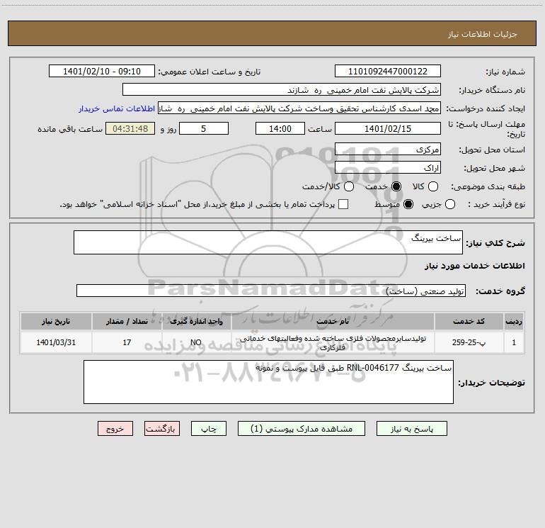 شرح کلی نیاز: ساخت بیرینگ