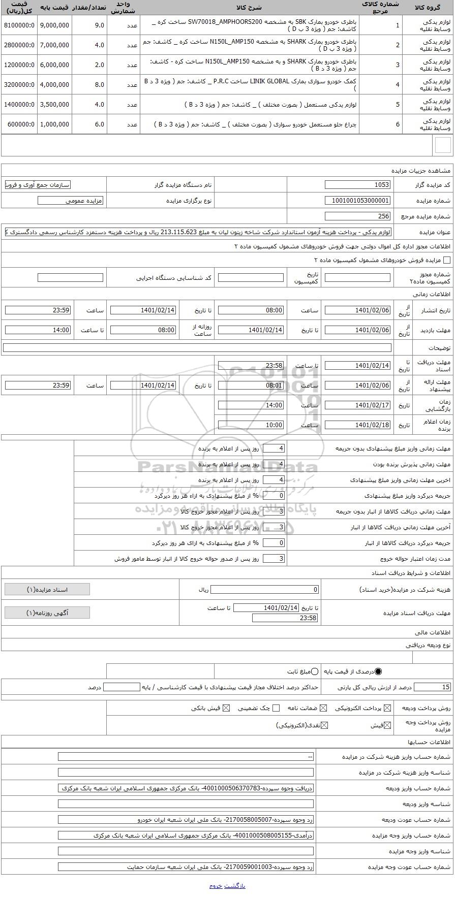 مزایده ، لوازم یدکی - پرداخت هزینه آزمون استاندارد شرکت شاخه زیتون لیان به مبلغ 213.115.623 ریال و پرداخت هزینه دستمزد کارشناس ر, مزایده ، لوازم یدکی - پرداخت هزینه آزمون استاندارد شرکت شاخه زیتون لیان به مبلغ 213.115.623 ریال و پرداخت هزینه دستمزد کارشناس ر