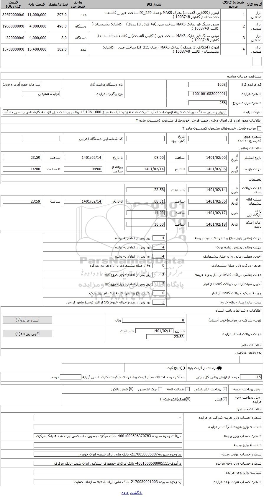 کد مزایده گزار1053نام دستگاه مزایده گزارسازمان جمع آوری و فروش اموال تملیکی