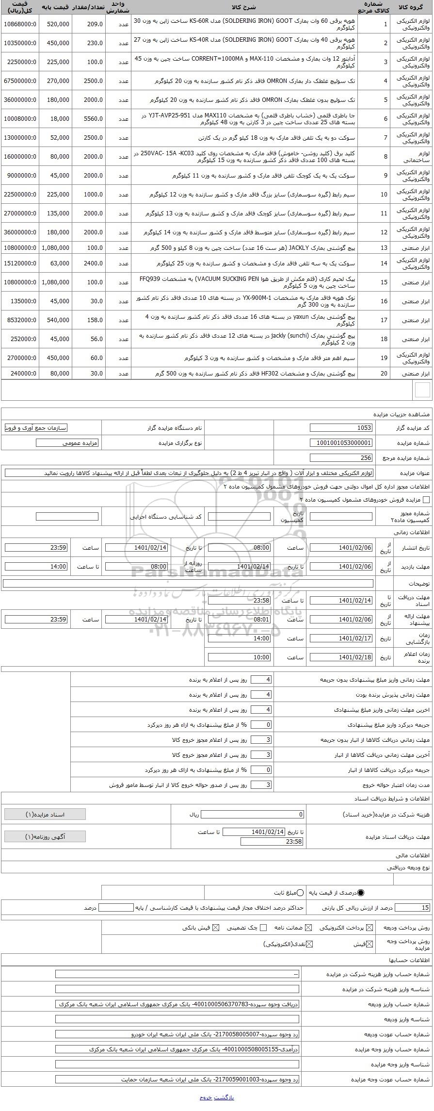 کد مزایده گزار1053نام دستگاه مزایده گزارسازمان جمع آوری و فروش اموال تملیکی