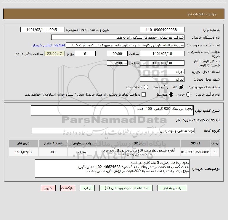 نام دستگاه خریدار:شرکت هواپیمایی جمهوری اسلامی ایران هما