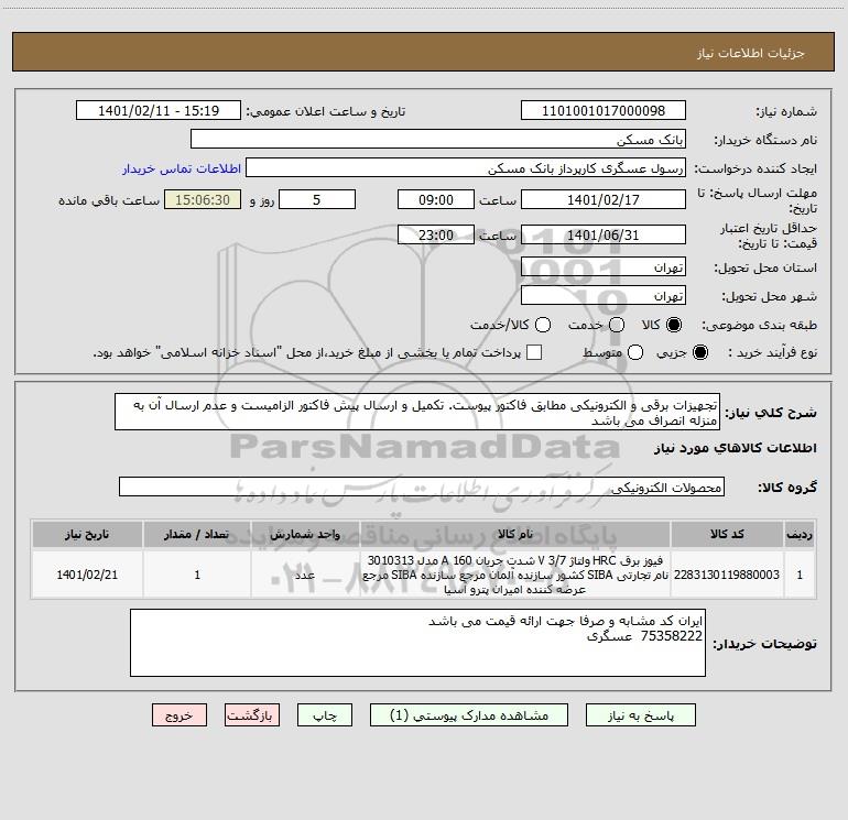 شرح کلی نیاز: تجهیزات برقی و الکترونیکی مطابق فاکتور پیوست. تکمیل و ارسال پیش فاکتور الزامیست و عدم ارسال آن به منزله انصراف می باشد