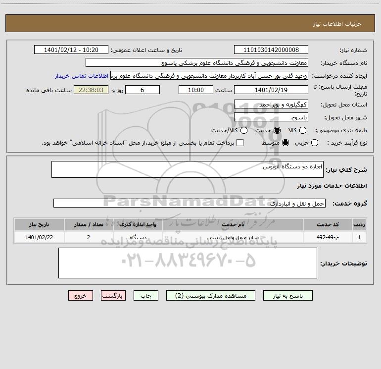 شرح کلی نیاز: اجاره دو دستگاه اتوبوس