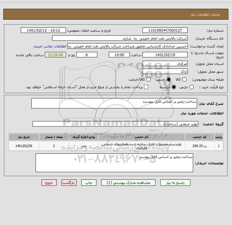 نام دستگاه خریدار:شرکت پالایش نفت امام خمینی ره شازند