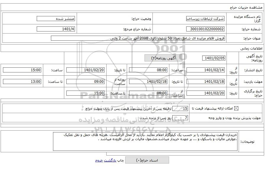 شماره حراج3001001022000002شماره حراج مرجع1401/4
