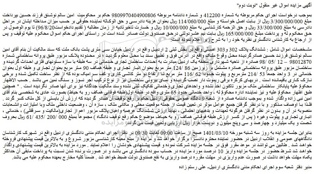 "آگهی مزایده اموال غیر منقول "نوبت دوم