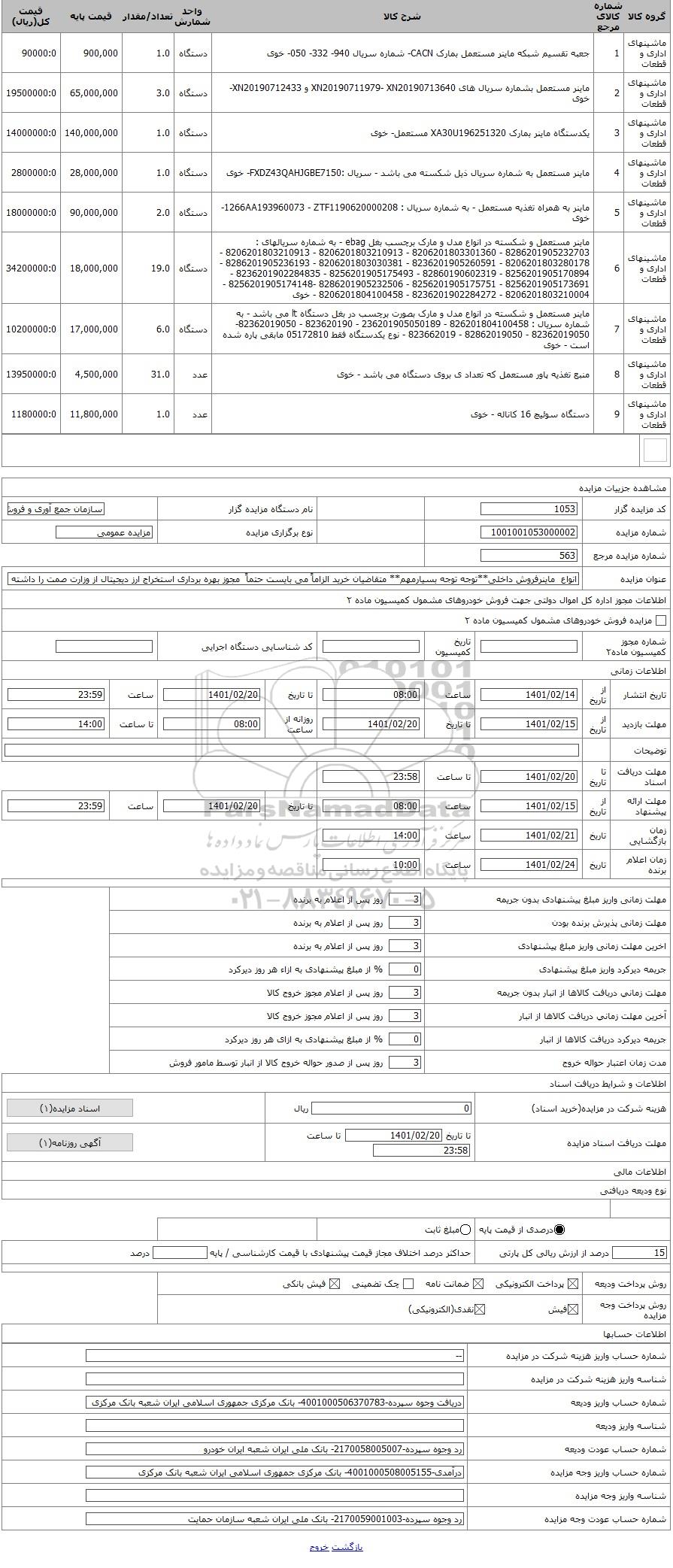 9 مزایده فروش اقلام 9738805 1404/07/30 new not special not payed مازندران
