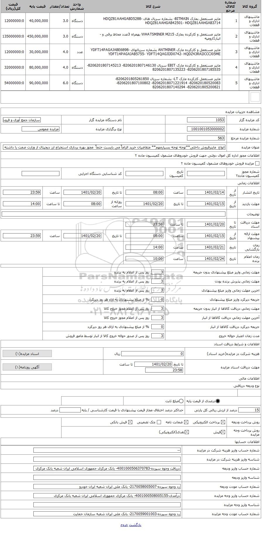 مزایده ، انواع ماینرفروش داخلی**توجه توجه بسیارمهم** متقاضیان خرید الزاماً می بایست حتماً مجوز بهره برداری استخراج ارز دیجیتال, مزایده ، انواع ماینرفروش داخلی**توجه توجه بسیارمهم** متقاضیان خرید الزاماً می بایست حتماً مجوز بهره برداری استخراج ارز دیجیتال