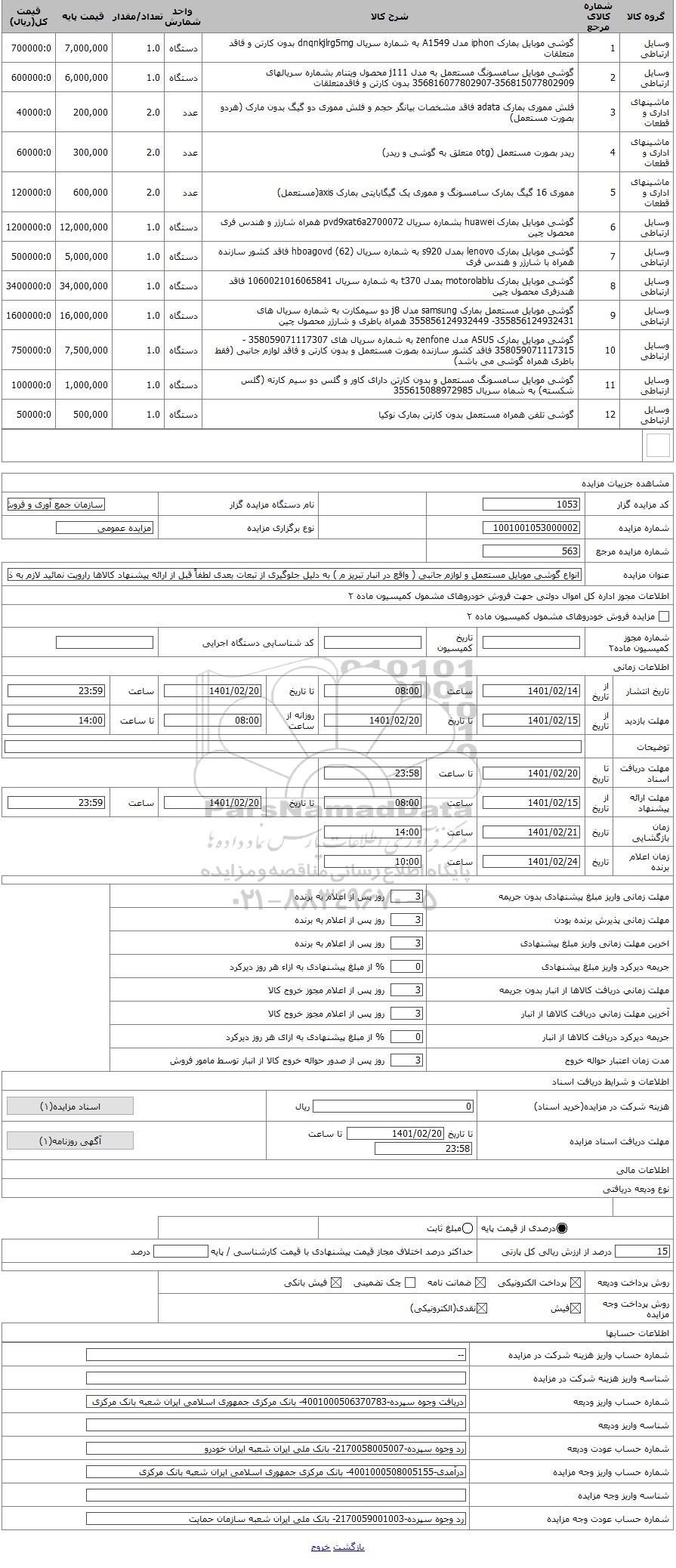 کد مزایده گزار | 1053 | نام دستگاه مزایده گزار | سازمان جمع آوری و فروش اموال تملیکی | |
