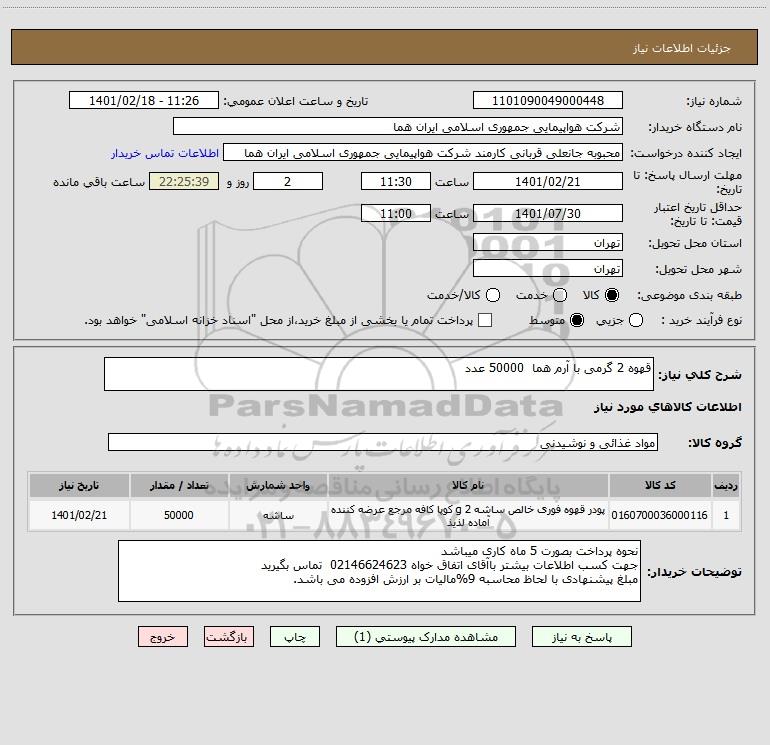 استعلام قهوه 2 گرمی با آرم هما 50000 عدد , استعلام قهوه 2 گرمی با آرم هما 50000 عدد