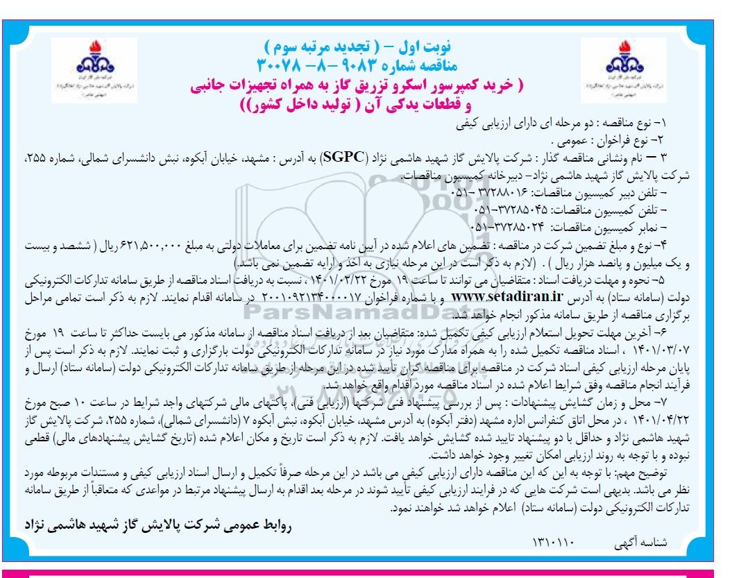 نوبت اول - (تجدید مرتبه سوم) مناقصه شماره 9083- 8- 30078 ؟