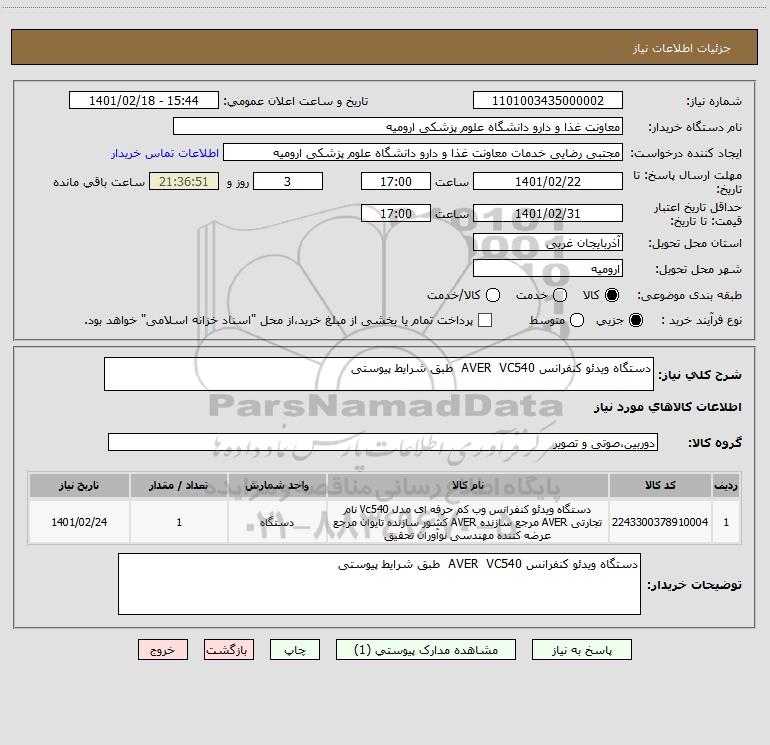 نام دستگاه خریدار:معاونت غذا و دارو دانشگاه علوم پزشکی ارومیه